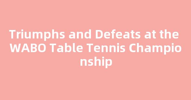In conclusion, the WABO Table Tennis Championship was a memorable event, filled with triumphs and defeats. It showcased the best players in the world and provided us with some valuable lessons. As we look forward to the next tournament, we can only hope for more excitement and drama.